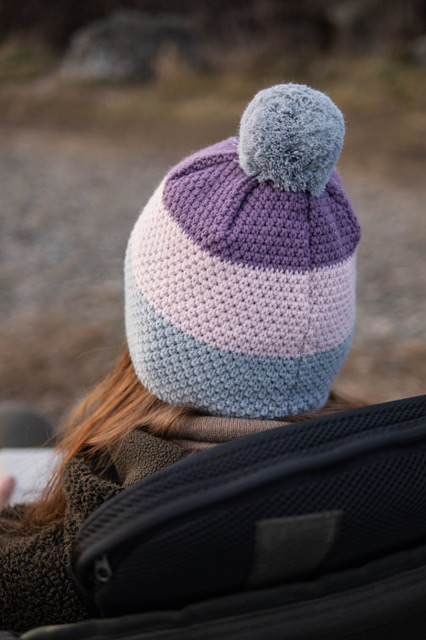 Dámská zimní čepice v tříbarevném provedení s bambulí, která má fleecovou podšívku.